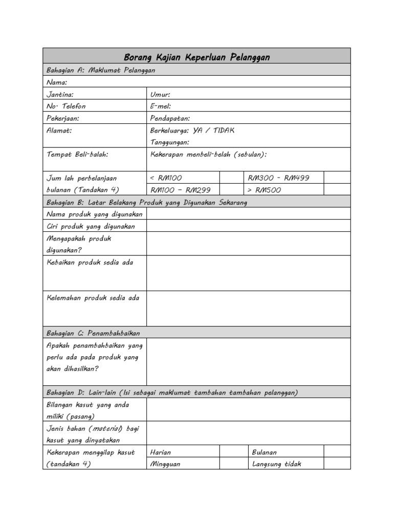 Contoh borang kajian keperluan pelanggan rbt tingkatan 3. Apakah 2 kriteria yang. Borang kajian keperluan pelanggan bahagian a.
